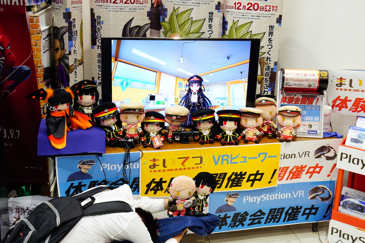 除了这样大型的,日本全国范围的线下活动外,进行豹个人还积极投身于游戏宣传,以及日本铁路的各种活动中。而这每一次的活动,也都是一次次小型的玩家交流会。虽然对于中国玩家来说可能有些遥远,但现在赴日旅游的许可条件越来越宽松。比如我10月到日本旅游的20多天时间里,就和进行豹见了三次面!一次是在日比谷公园进行的日本铁路节展示贩卖会;一次是横浜的一家数码商店「ノジマららぽーと横浜店」进行的《爱上火车》PS VR体验推广会,还有一次是秋叶原举行的名为キャララ的galgame游戏厂商小型发布会。善于使用社交媒体进行宣传的进行豹会在自己打算决定参加某项活动的前几天在推特上发布行程预告——其实也可以视为创作者个人的非官方小聚会,然后有兴趣的玩家,特别是日本关东地区的一些玩家就会在当天聚集到那里。例如我参加的这三次小聚会里,就遇到了大概4、5位已经面熟的玩家。其中的几位可能我原本就在网上见过他们的布偶,他们也或许在网上知道有我这么一个上海的玩家。而我也会像他们一样,每次这样的小聚会就会带上八六布偶和玲奈布偶。大家尽管由于各种原因不太愿意真人露面合影,却十分喜欢把布偶放在一起合影,如此良好的互动氛围,乃至我这样日语还是初级入门水平的人,也能感受并享受到这样的气氛。